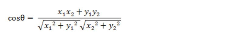 二维空间中向量A(x1,y1)与向量B(x2,y2)的夹角余弦公式: