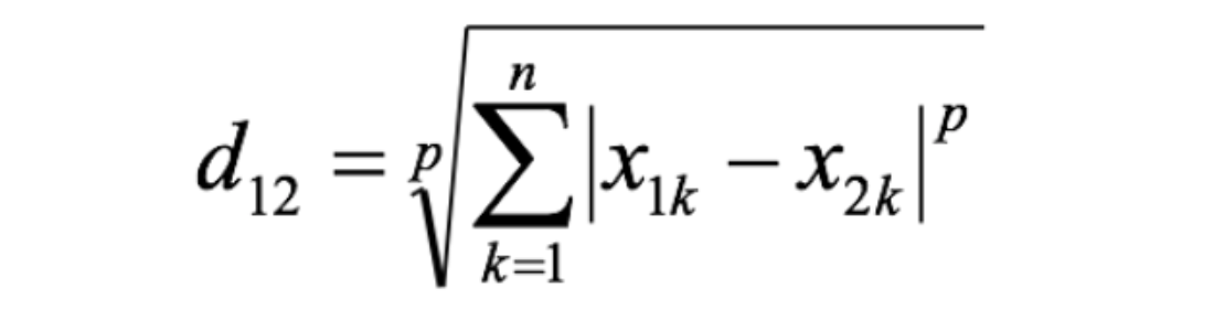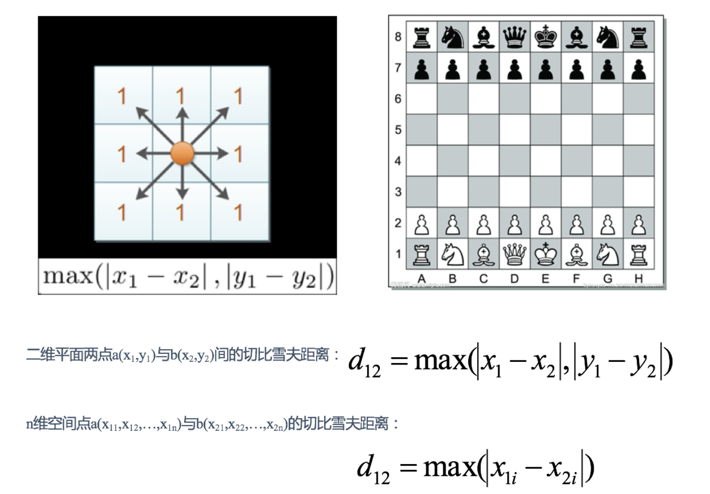 p = 1 是曼哈顿距离,2是欧式距离,无穷就是切比雪夫距离